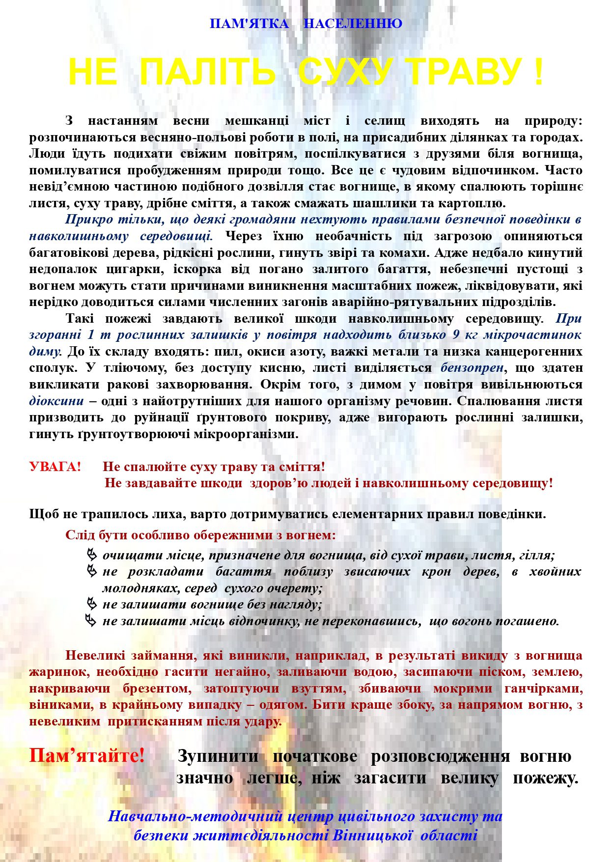 28.03.202528.03.2025 Comments 0 Feedbacks on “НЕ ПАЛІТЬ СУХУ ТРАВУ !”Новини by Адміністрація НЕ ПАЛІТЬ СУХУ ТРАВУ !